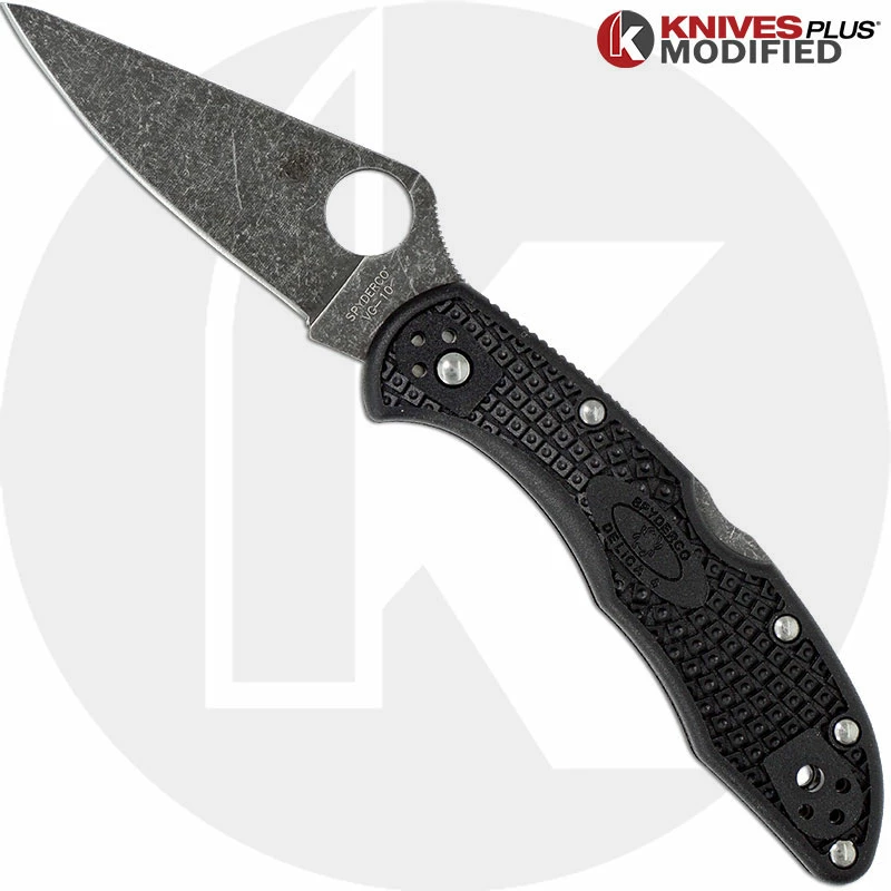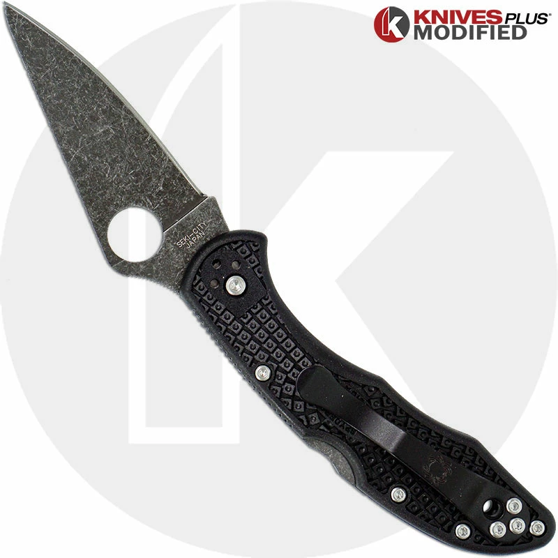 MODIFIED Spyderco Delica 4 – Acid Wash – Black Handle/Black Backspacer – KP-DLEICA-65