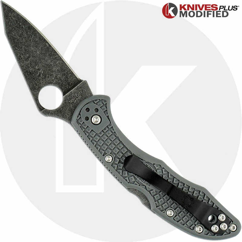 MODIFIED Spyderco Delica 4 – Acid Wash – Regrind – Gray Handle/Gray Backspacer
