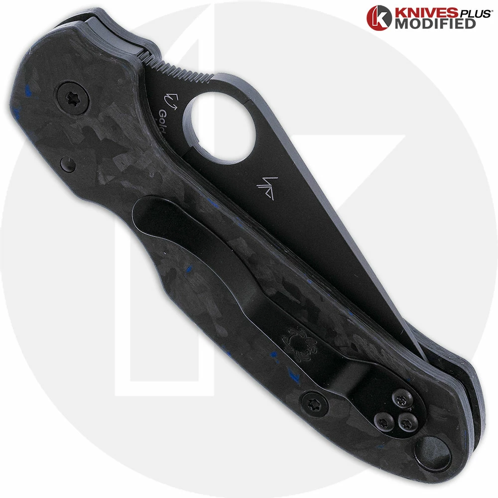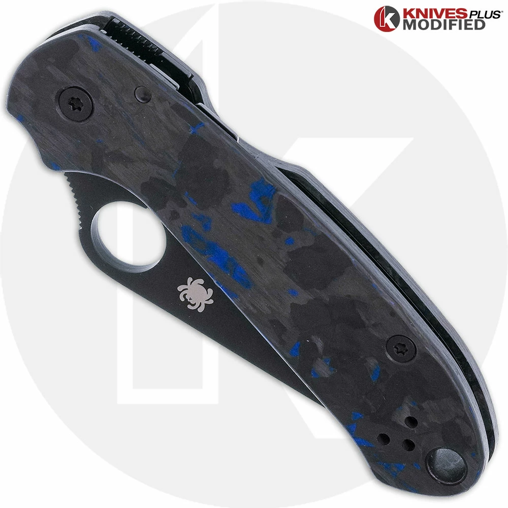 MODIFIED Spyderco Para 3 Black DLC Knife + KP SKINNY Blue Shred Carbon Fiber Scales