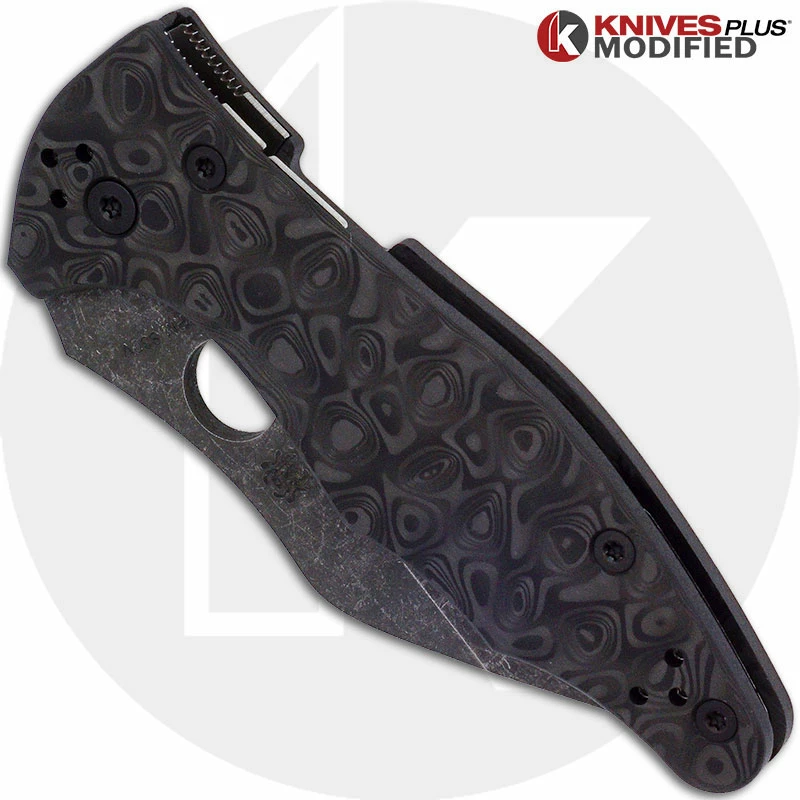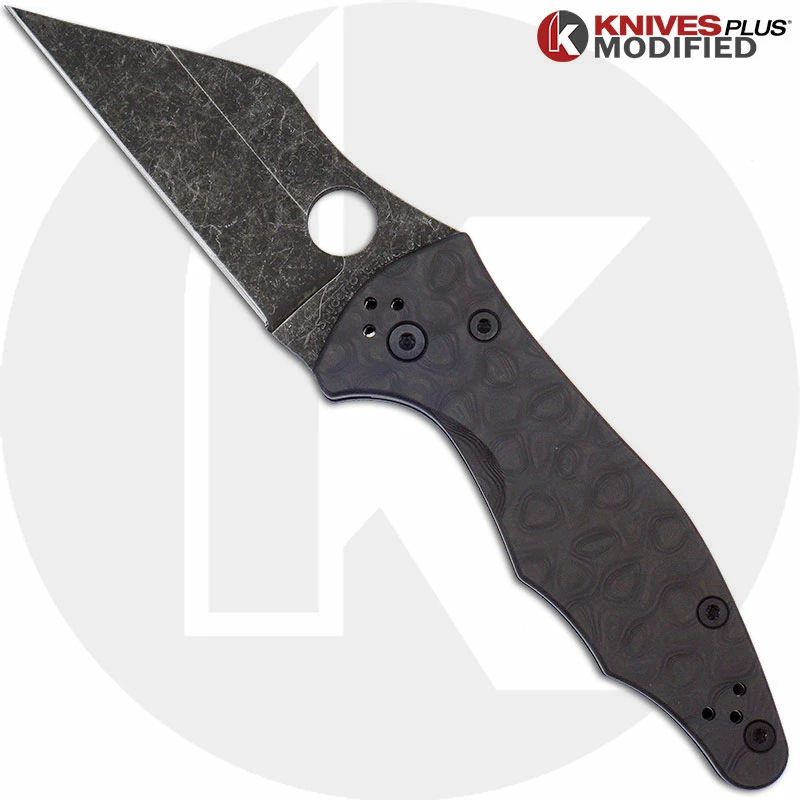 MODIFIED Spyderco Yojimbo 2 Knife with Acid Stonewash Blade + KP Damascus Pattern Carbon Fiber Scales + KP All Black Hardware