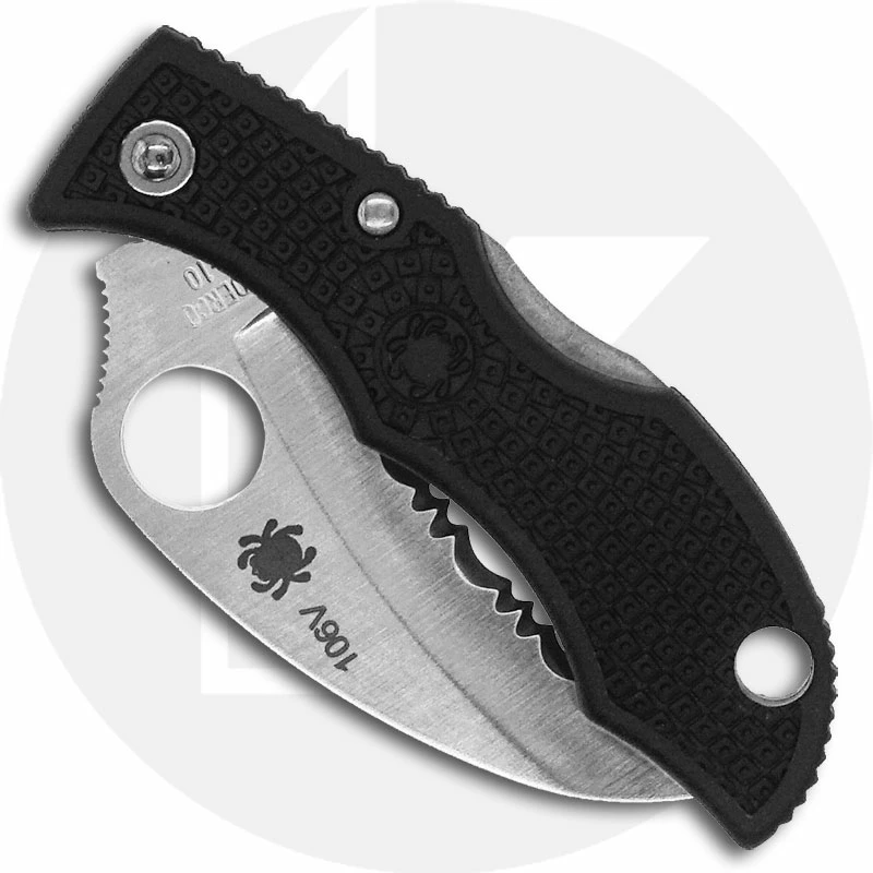 Molded into the FRN (fiberglass reinforced nylon) handle is Volcano Gripâ„¢ texturing and angles on the handle’s underside support ergonomically gripping the knife. SpyderEdge serrations run the full length of the VG-10 blade that is hollow-ground with slip-resistant spine jimping. Since the knife is small, positioning of the Spyderco Round Hole relative to the blade pivot, and the placement of the back-lock are precisely executed for smooth single-hand open/close. Ladybugs are clipless with a lanyard hole in the handle for a keychain or thong.